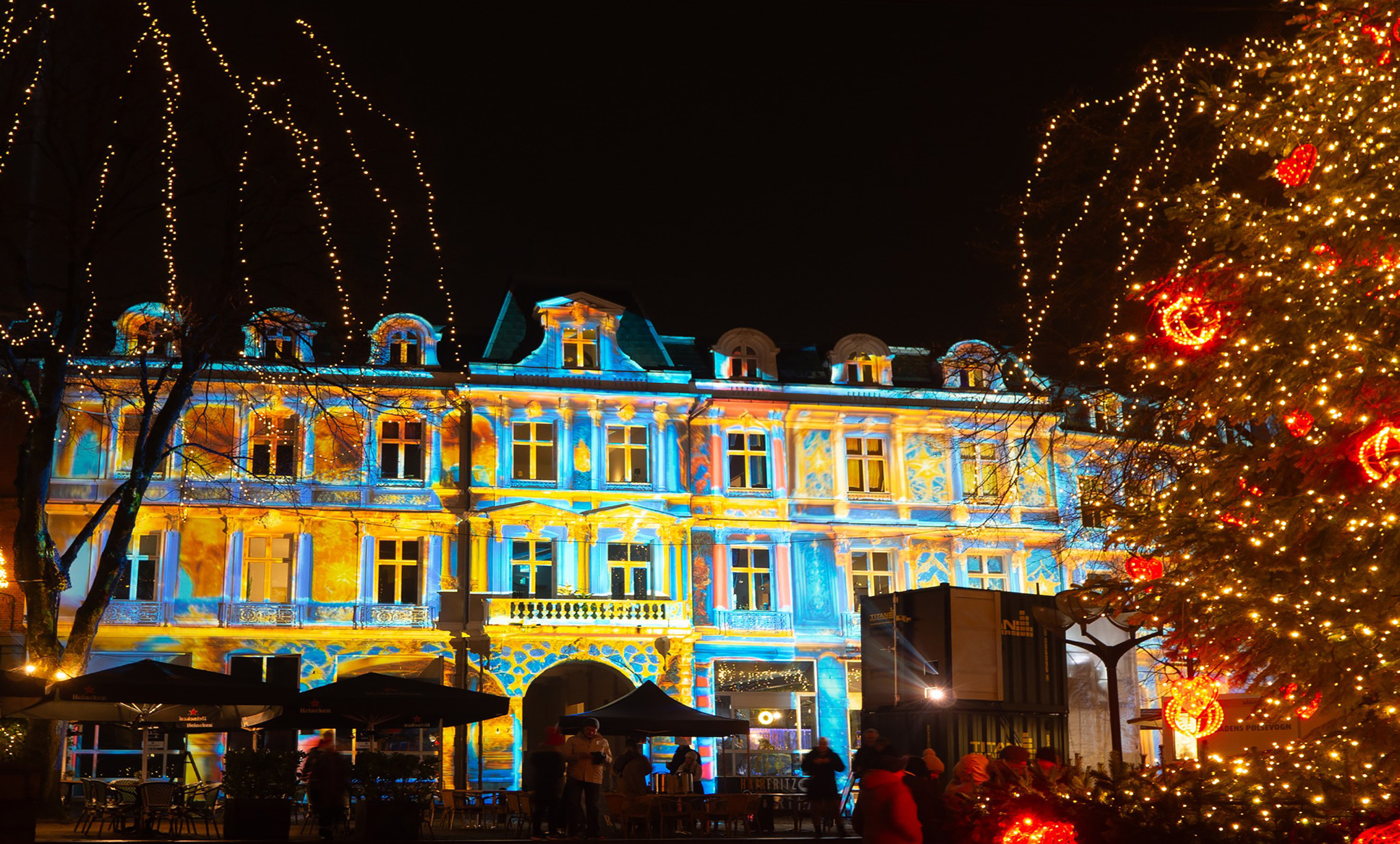 Se byens smukke torv hyldet ind i et magisk lysunivers der går 360 grader rundt på hele pladsen, nyd det flotte juletræ, det smukke rådhus og se den traditionsrige animation når en af torvets bygninger bliver levende – der kører forskellige shows med jævne mellemrum.