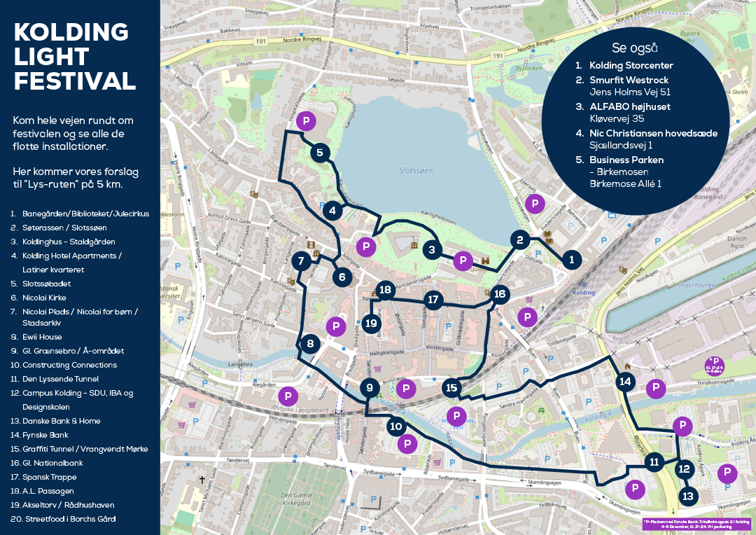 Kort inkl. p-pladser over Kolding Light Festival