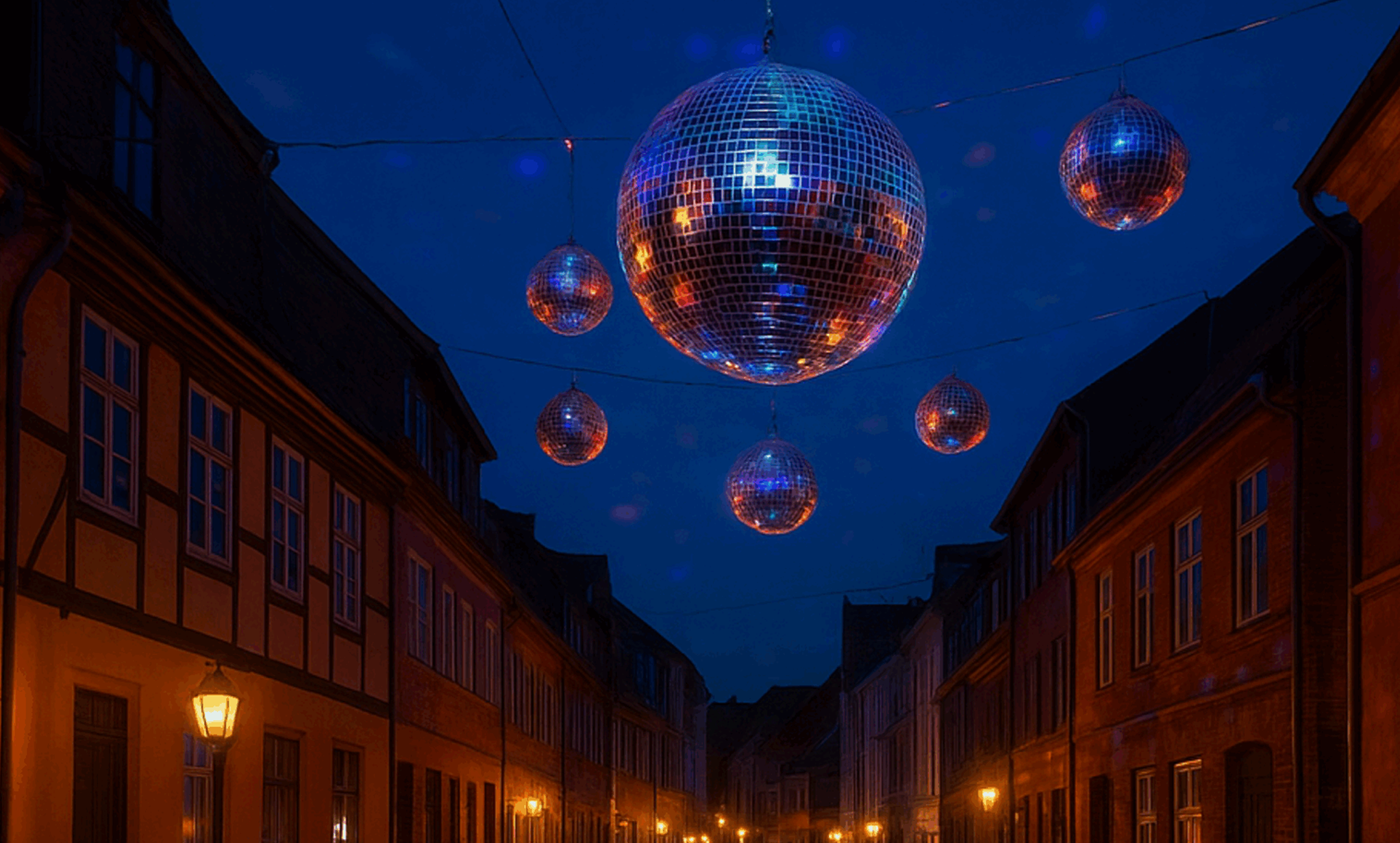 Gå en tur gennem det hyggelige Latinerkvarter, og se snefnuggene danse på væggene, når vi lyser gaden op med diskokugler. Oplev også de små hyggelige butikker og den helt unikke stemning.